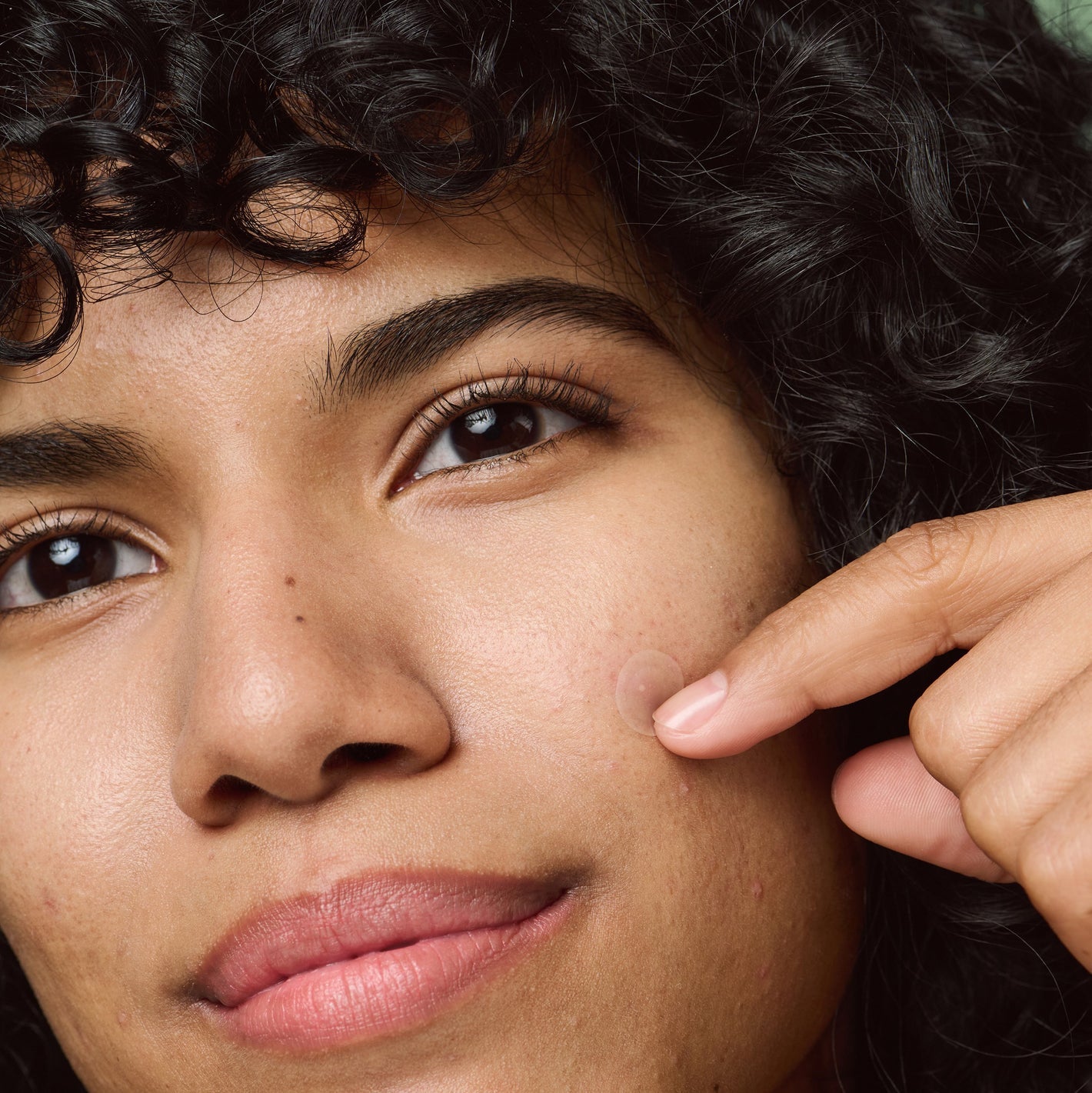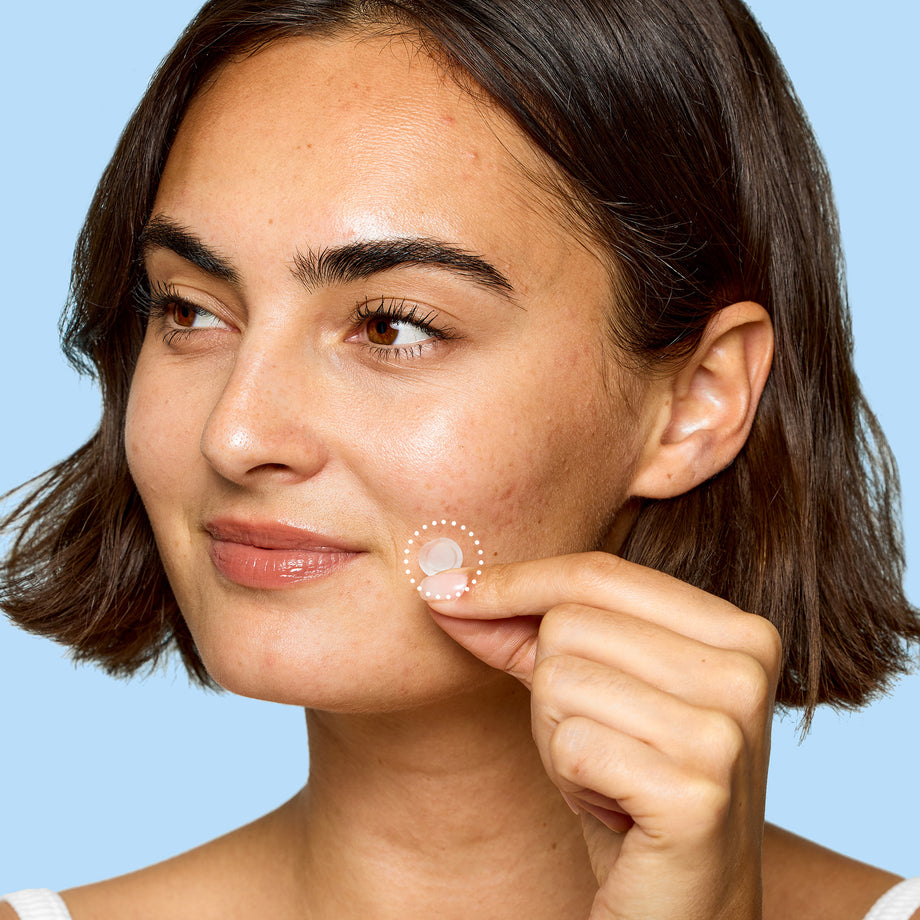 The patch works with hydrocolloid technology, which absorbs impurities, reduces redness, and promotes the skin’s natural healing while you sleep.